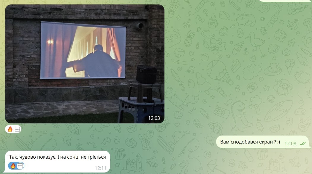 Домашний уличный кинотеатр из экрана для проектора ПРО-ЭКРАН 220 на 124 см